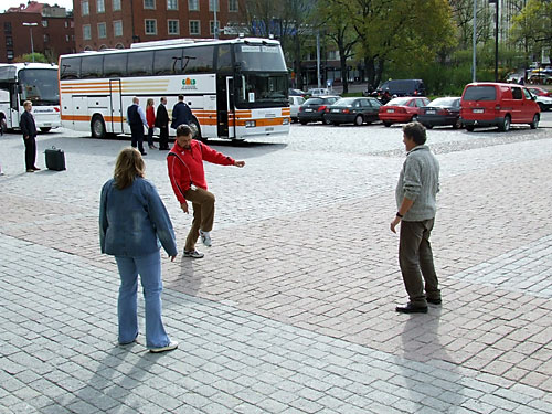 Lábtoll-labdázás a finn parlament elõtt