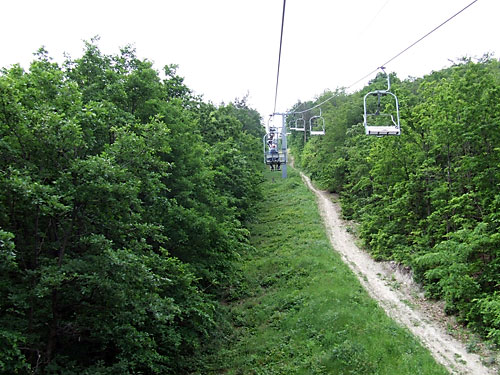 tetejére felvivõ libegõ 1332 méter hosszú (hosszabb, mint a János-hegyi), huszonöt perc alatt ért fel a hegy tetején lévõ kilátóig. A bátrabbak – Tóth