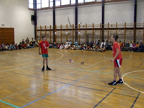 a lábtoll-labdázás bemutatására. Fehér János vezetésével gyermek és