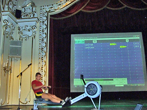 birkózó világbajnok. A sportbemutatók között ergométeres evezõs versenyt, az