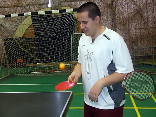 résztvevõk asztaliteniszben, fallabdában, tollaslabdában és teniszben. Az gyõz,