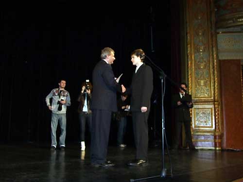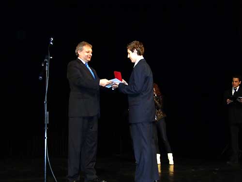 Lukács Márton veszi át a díjat Hiller István minisztertõl