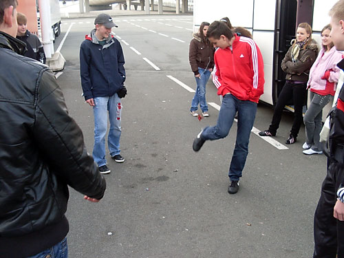 Lábtoll-labdázás a kompra várva