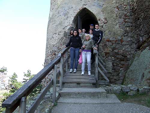 megállónál a résztvevõk megrohamozták Boldogkõ várát. Felpróbálták a sisakokat,