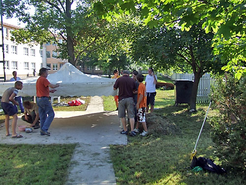feldíszítve, a tornacsarnok környéke rendbe téve, áll a sörsátor, 120 szálláshely