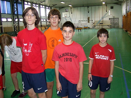 Jánoshidán a Petõfi Sándor Általános Iskola sportcsarnokában a lábtoll-labdázók