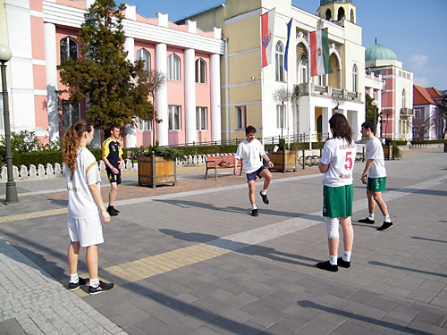 járókelõk is kipróbálhatták a lábtoll-labdázást.