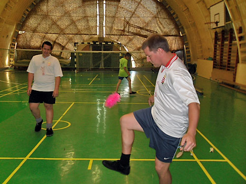 Mercédesz mutatták be a lábtoll-labdázást a vendégeknek, majd kezdetét