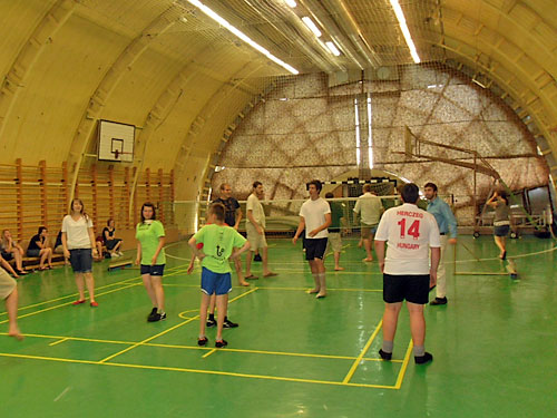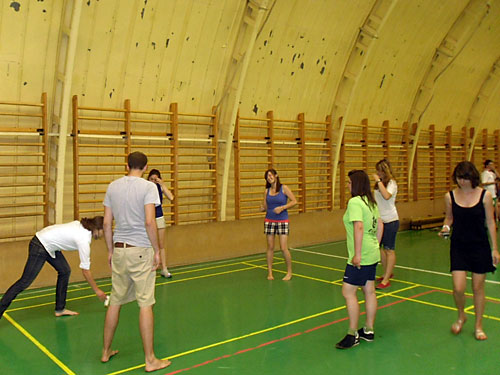 kórus tagjai, ahol a lábtoll-labdázással ismerkedtek. Tóth Gábor