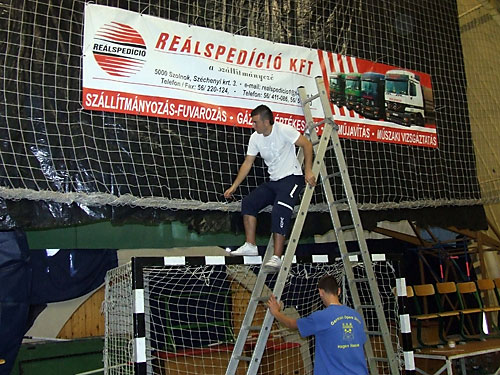 Szurmai Tibor és Köböl Áron az egyik támogató feliratát