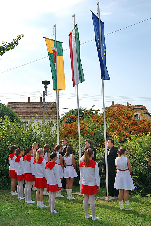 A zászlófelvonók: Szûcs Gergely, Barta Ferenc és Herczeg
