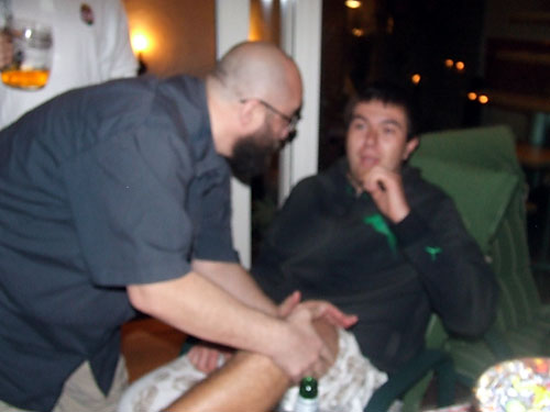 Tóth Roland és Harsányi Zoltán a kerti partin