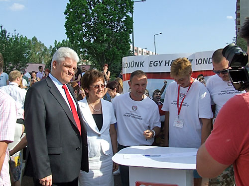londoni olimpiára utazó magyar sportolókat lelkesítõ jókívánságaikat.