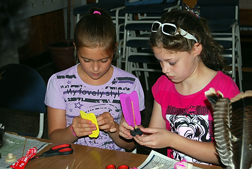 gyerekek saját gyûjtésû pulyka, fácán és libatollakból, papírból és mûanyagból