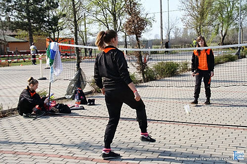Reggel 9 órakor felállítottuk hálónkat, kipakoltuk a labdákat, szórólapoka, és