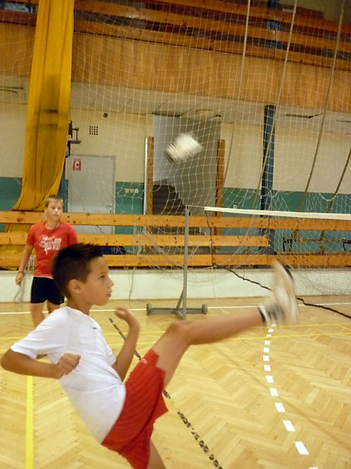 bemelegítése, a labdaérintések gyakorlása. Még a nyárhoz illõ vidámsággal, sok