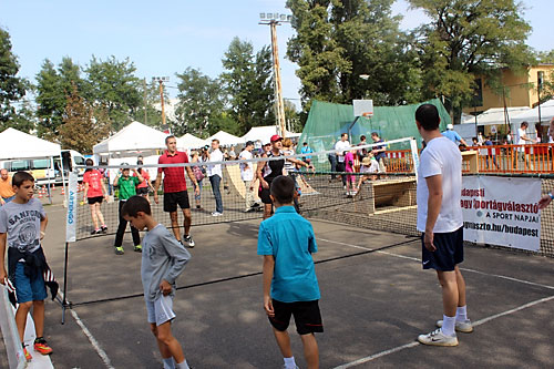 Bakó Krisztina, Fehér János és Tóth Gábor vezetésével a második napon is jelen voltak az Újszászi VVSE lábtoll-labdázói – Bakó Lili, Csák Vivien, Diós Letícia, Dombai Ádám, Ézsiás Fanni, Ézsiás Zsófia, Hornyák Erzsébet, Konka Tímea, Kovács Brigitta, Kökény Martin, Tóth Csenge –, akik játszottak a családokkal, és errõl a pontgyûjtõ könyvecskékbe igazolást is adtak.