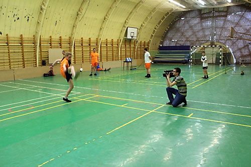 és Újságíró Iskola – tanulója vizsgafilmjét a lábtoll-labdáról készíti. Május