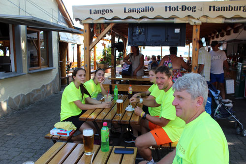 Újszászi VVSE lábtoll-labdázói. Két balatoni fürdés között Farkas Lilla,