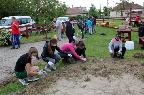 ültettek, kerítést, hintákat és fa játékokat festettek. A közösségi munkában