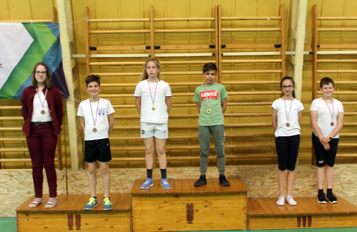 évfolyambajnokság 1-4. helyezettjei az összevont 5-6. osztályos bajnokságban