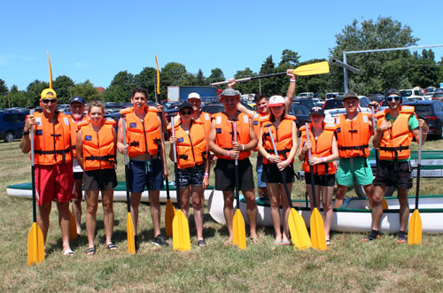 szakosztályának 12 tagja, többségében lábtoll-labdázók, – egy kajakban és három