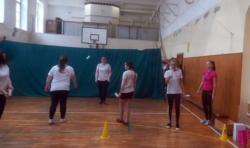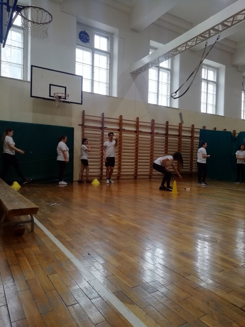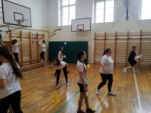 osztályos tanulói ismerkedtek meg a lábtoll-labdázással. Testnevelés óra