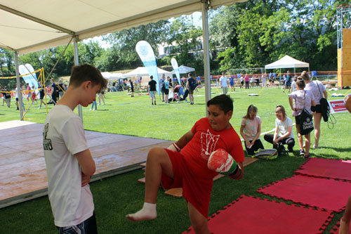 Az újszásziak sok érdeklõdõvel lábtoll-labdáztak, szepatakáztak és