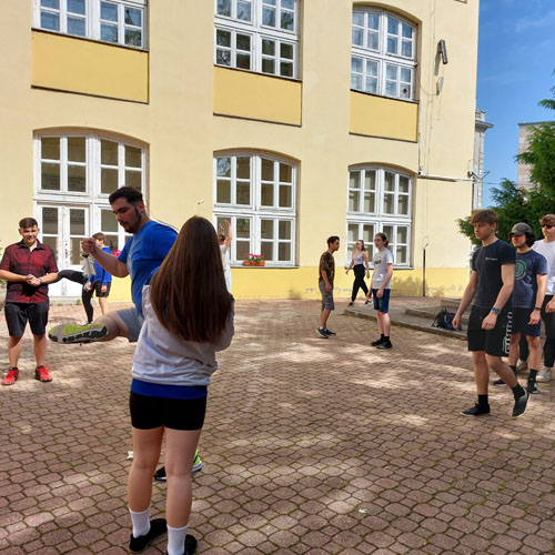 foglalkozást tartottak Szolnokon a Varga Katalin Gimnázium iskolaudvarán.