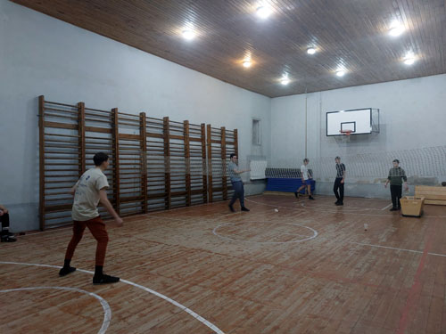 az újonnan felújított általános iskolával, majd a sportcsarnokba indultunk,