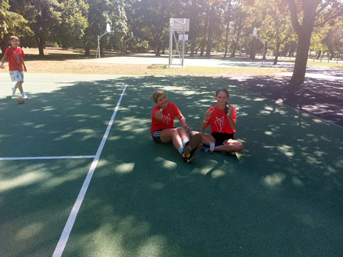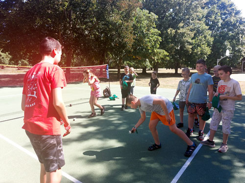 lábtoll-labda bemutatót tartsunk a táborozó gyerekeknek. Július 30-án kora