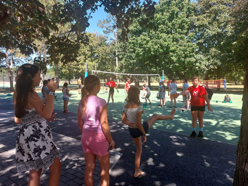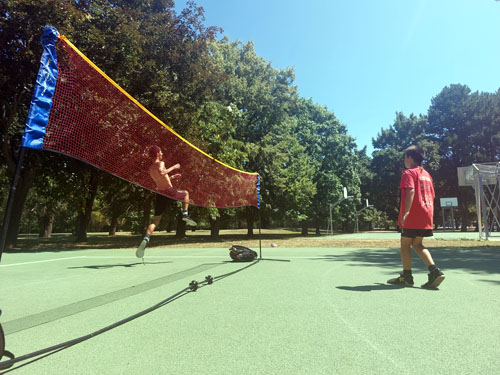 A standunk egy rekortán burkolatú árnyékos szabadtéri röplabda