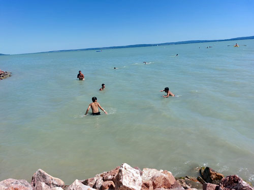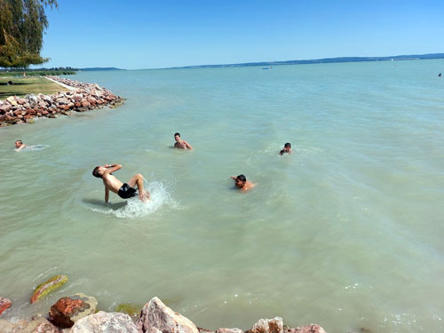 vízhõmérsékletû Balatonban a ránk váró négy és fél órás hazaút elõtt. Kalandos