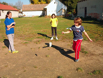 Labda A speciális, 15 gramm súlyú labda négy db 15 cm-es libatollból (amely különbözõ színekre - piros, sárga, kék, zöld - festhetõ) és egy 4 cm átmérõjû kerek gumitalpból áll. A gumitalp alja és teteje között 5-7 db papírkorong biztosítja a labda rugózását és egyenletes repülését. Részletek ...