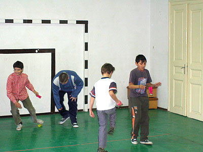 Labda A speciális, 15 gramm súlyú labda négy db 15 cm-es libatollból (amely különbözõ színekre - piros, sárga, kék, zöld - festhetõ) és egy 4 cm átmérõjû kerek gumitalpból áll. A gumitalp alja és teteje között 5-7 db papírkorong biztosítja a labda rugózását és egyenletes repülését. Részletek ...