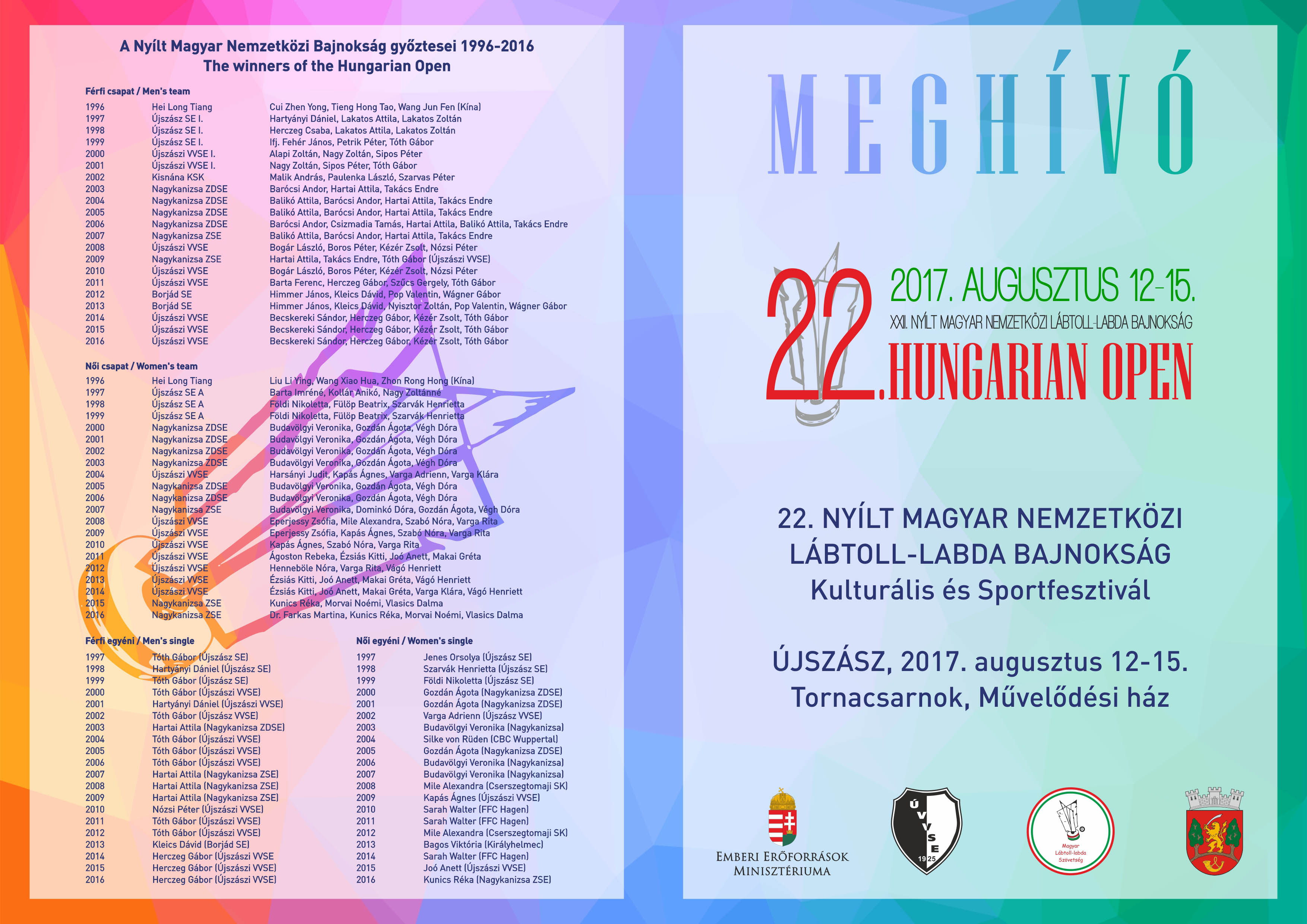 Augusztus 12-én hét ország – Ausztria, Csehország, Franciaország, Magyarország, Németország, Románia, Szlovákia – 175 versenyzõjének felvonulásával kezdõdött a 22. Hungarian Open.....