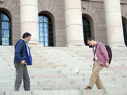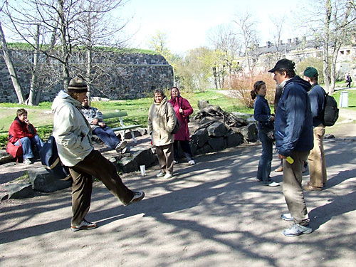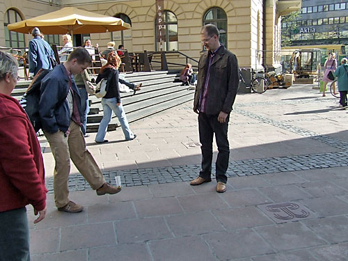 Lábtoll-labdázás a finn parlament elõtt