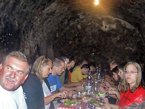 Vécsen egy pincében megkóstolták a magyar borokat, majd Kisnánán Szarvas