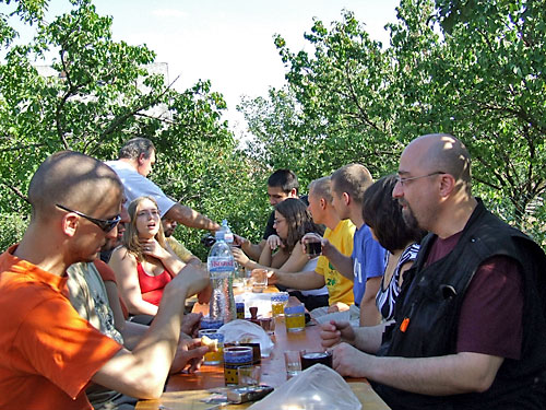 László kertjében fejezték be a napot, ahol a lábtoll-labda is elõkerült.