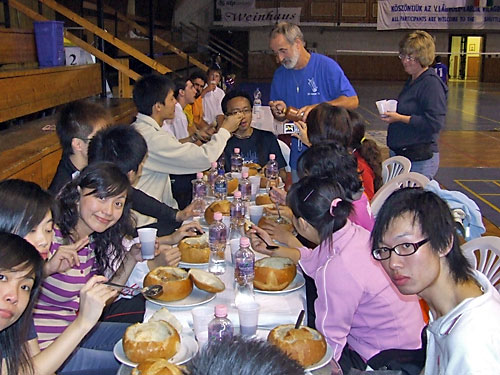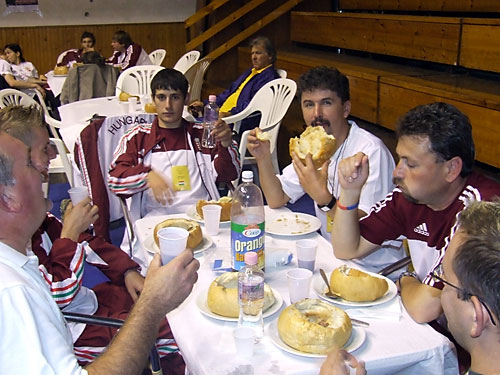 a férfi és nõi hármas selejtezõire került sor. A mérkõzések után gulyáspartin