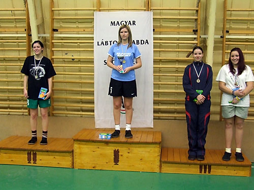 Gozdán Ágota (Nagykanizsa ZSE) könnyedén nyerte a bajnokságot. 2. Mile Alexandra (Cserszegtomaj SK) döntõ: 21-13, 21-14. 3. Ézsiás Kitti és Makai Gréta.