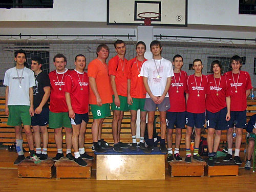 Férfi hármas eredményhirdetés: 2. Nagykanizsa ZSE, 1. Újszászi VVSE, 3. Nagykanizsa ZSE