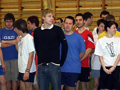 (Nagykanizsa ZSE) megismételte elõzõ fordulóbeli gyõzelmét. Döntõ: 21-12, 21-18. A dobogós helyeken három újszászi páros osztozott. 2. Boros Péter, Nózsi Péter, 3. Herczeg Gábor,