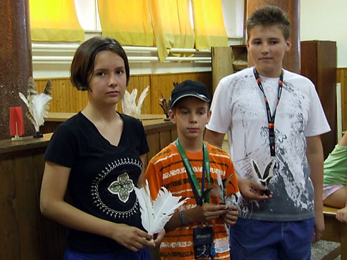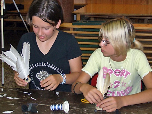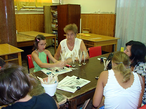 toll-labdák mellett színes mûanyag „tollú” alkotások is születtek. Többen egy