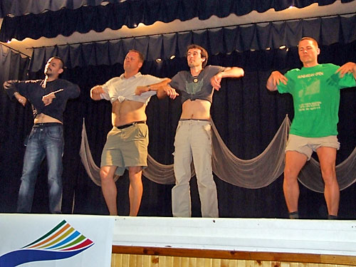 és volt lábtoll-labdázó Kaló Anikó) moldvai tánca volt. Utánuk az angol csapat következett. Tóth Gergõ kíséretével elénekelték a Yesterdayt, majd a