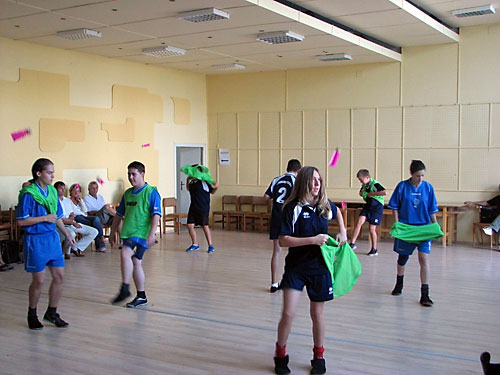 mozgó háló – amit testnevelõ kollégák tartottak – megoldhatatlan feladat elé