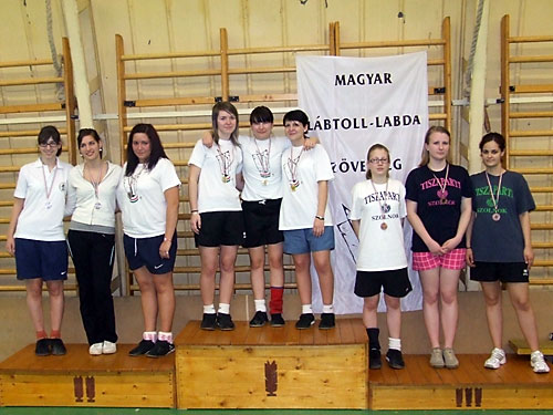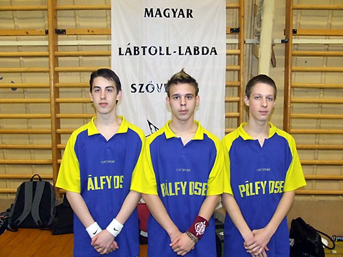 Újszászon megrendezett megyei lábtoll-labda diákolimpián. A színvonalas versenyen
