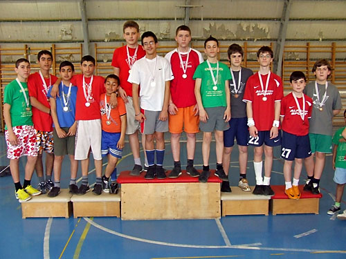 A serdülõ fiú hármas eredményhirdetése: 2. Újszász, 1.