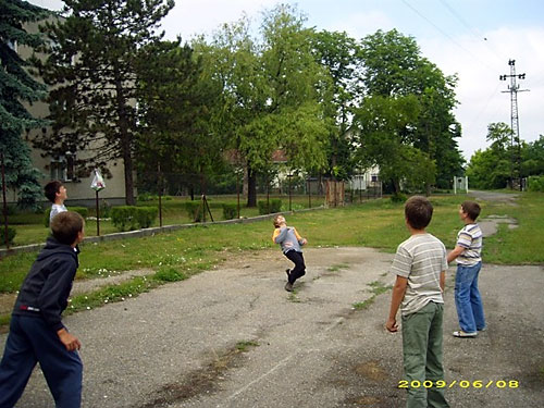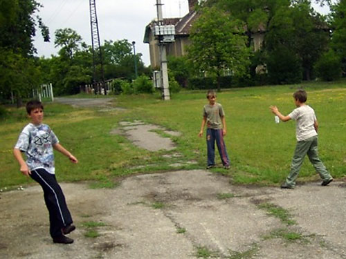 lábtoll-labdával. A gyerekek megpróbálták lábbal eltalálni, és egymásnak