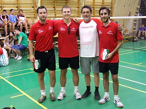 Bogár László, Boros Péter, Kézér Zsolt, Nózsi Péter (Újszászi VVSE) – Herczeg Gábor, Szûcs Gergely, Takács Zoltán (Újszászi VVSE) 19-21, 21-13, 23-21.